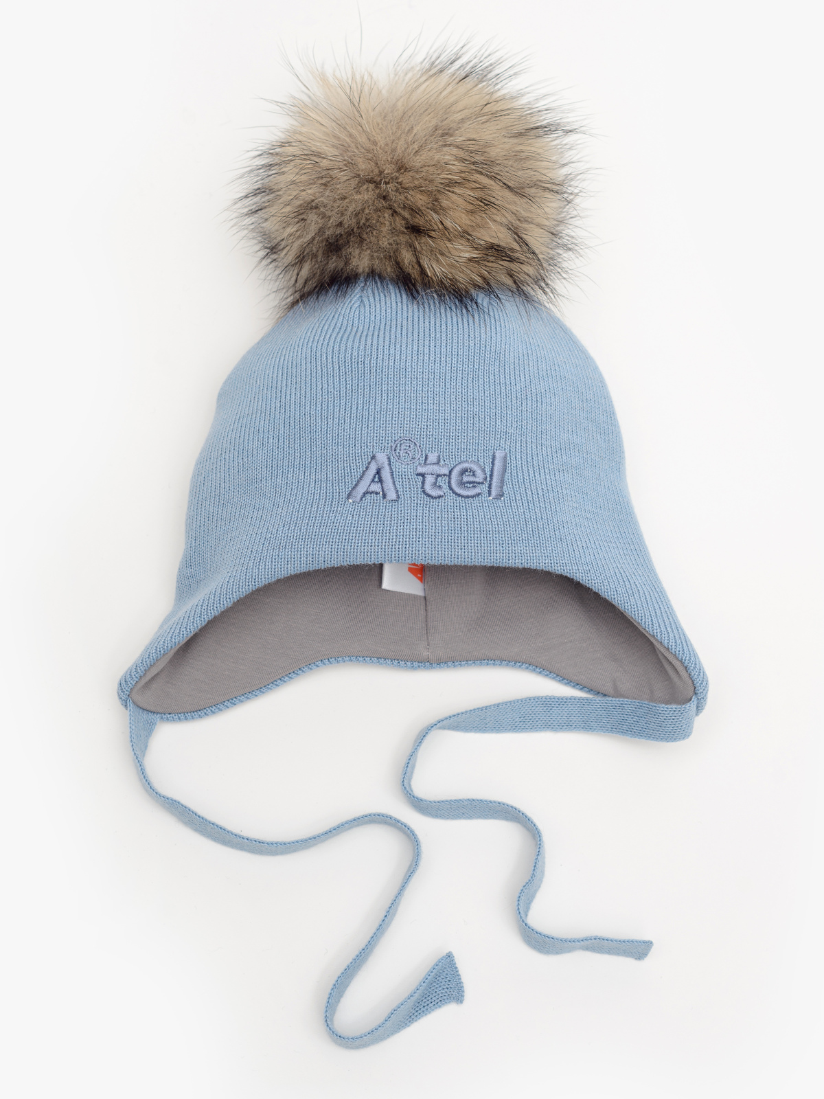 50% шерсть, 50% ПАН Подкладка: 100% хлопок Утеплитель: 100% ПЭ Помпон: натуральный мех (енот)