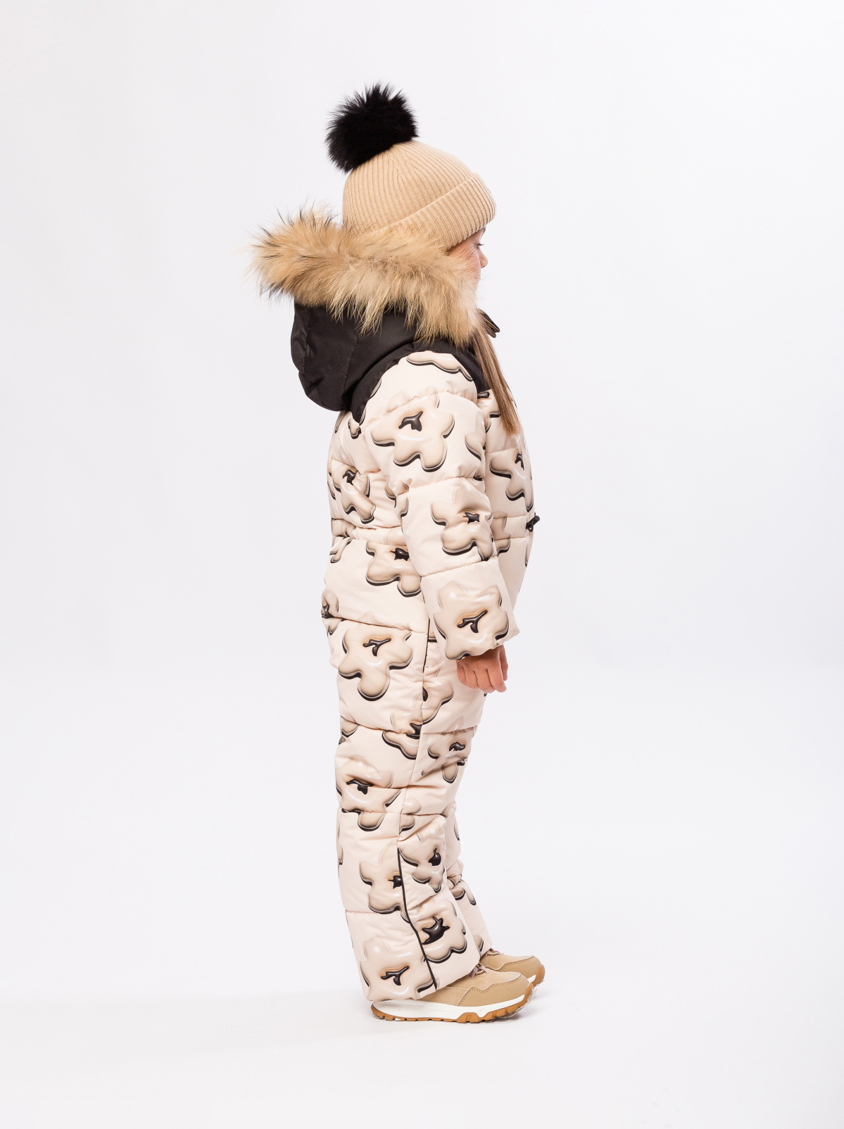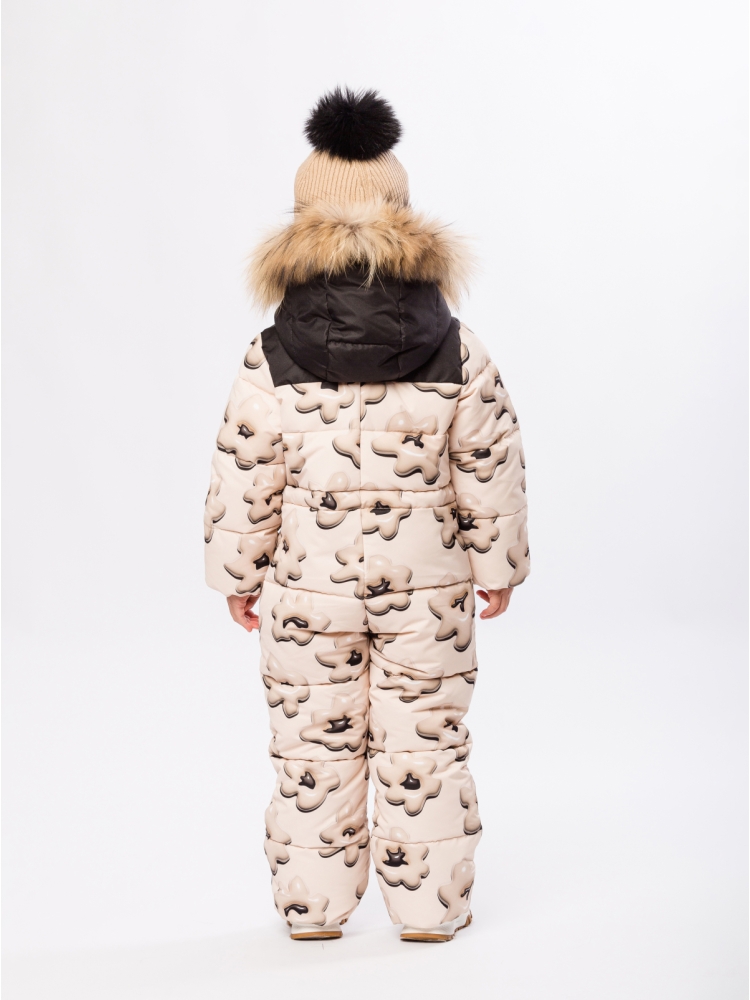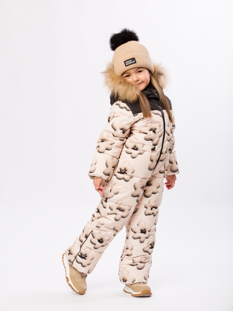 Детский, зимний комбинезон для девочки из мембранной ткани с характеристиками 7000/7000 в сочетании с утеплителем синтепух 300 гр. отлично подойдет для повседневных прогулок, а также занятий горнолыжным спортом. Утепленный комбинезон с ярким авторским принтом обеспечит ребёнку тепло и комфорт в холодную погоду. Особенности комбинезона: Прямой крой с регулируемой кулиской по линии талии обеспечивает свободу движений и приталенный силуэт. Подкладка из микрофлиса в зоне спинки и бёдер, капюшона и воротника приятна на ощупь, а полиэстер в рукавах, штанинах гарантирует лёгкость и износостойкость. Втачной капюшон с регулируемой кулиской со съемной опушкой из натурального меха на кнопках, высокий воротник-стойка. Молния с внутренней ветрозащитной планкой и клапаном для защиты подбородка от защемления. Мягкие трикотажные манжеты, для лучшей защиты от ветра и холода, два кармана на молнии. Снегозащитные манжеты на силиконовой резинке по низу брюк, надежно защитят от попадания снега и влаги в обувь. Нашивка с логотипо