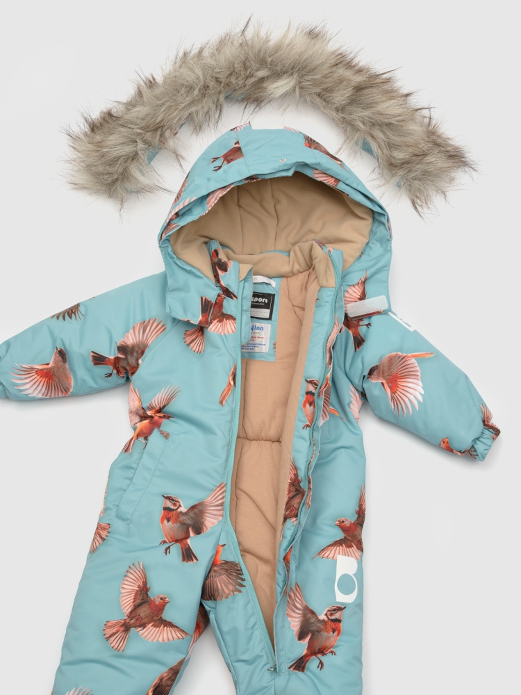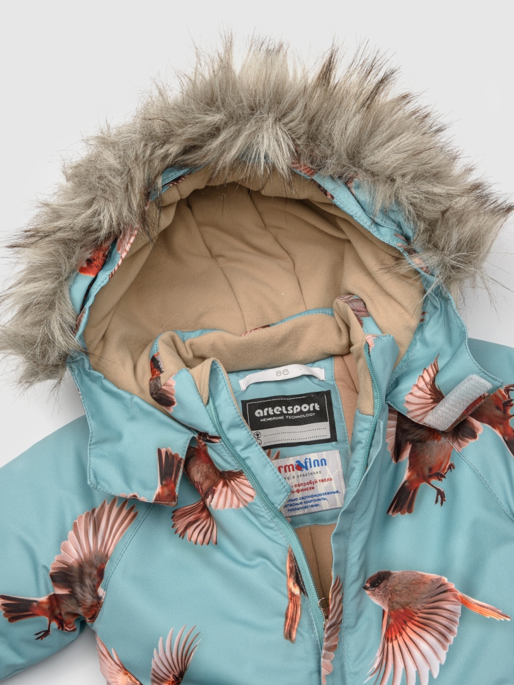 Этот детский утепленный комбинезон с эксклюзивными принтами идеально подойдет для самых маленьких мальчиков и девочек, благодаря своему унисекс дизайну. Изготовленный из мембранной ткани с параметрами водонепроницаемости и воздухопроницаемости 7000/7000 и оснащенный технологичным утеплителем Termofinn на 300 гр, комбинезон для девочки обеспечивает комфорт во время прогулок, посещений детского сада и активных зимних занятий. Удлиненная молния с дополнительной защитой от защемления подбородка с ветрозащитным клапаном упрощает процесс одевания. Капюшон интегрирован, несъемный, с возможностью регулировки глубины специальным клапаном и декорирован съемной опушкой из искусственного меха чёрно-бурой лисы. В комбинезоне для малышей манжеты рукавов на резинке с внутренней стороны дополнены мягкой обтачкой из микрофлиса для дополнительного уюта. Для хранения мелочей предусмотрен один теплый карман на кнопке. Комбинезон зимний для мальчика детский оснащен множеством светоотражающих элементов, которые обеспечивают видимо