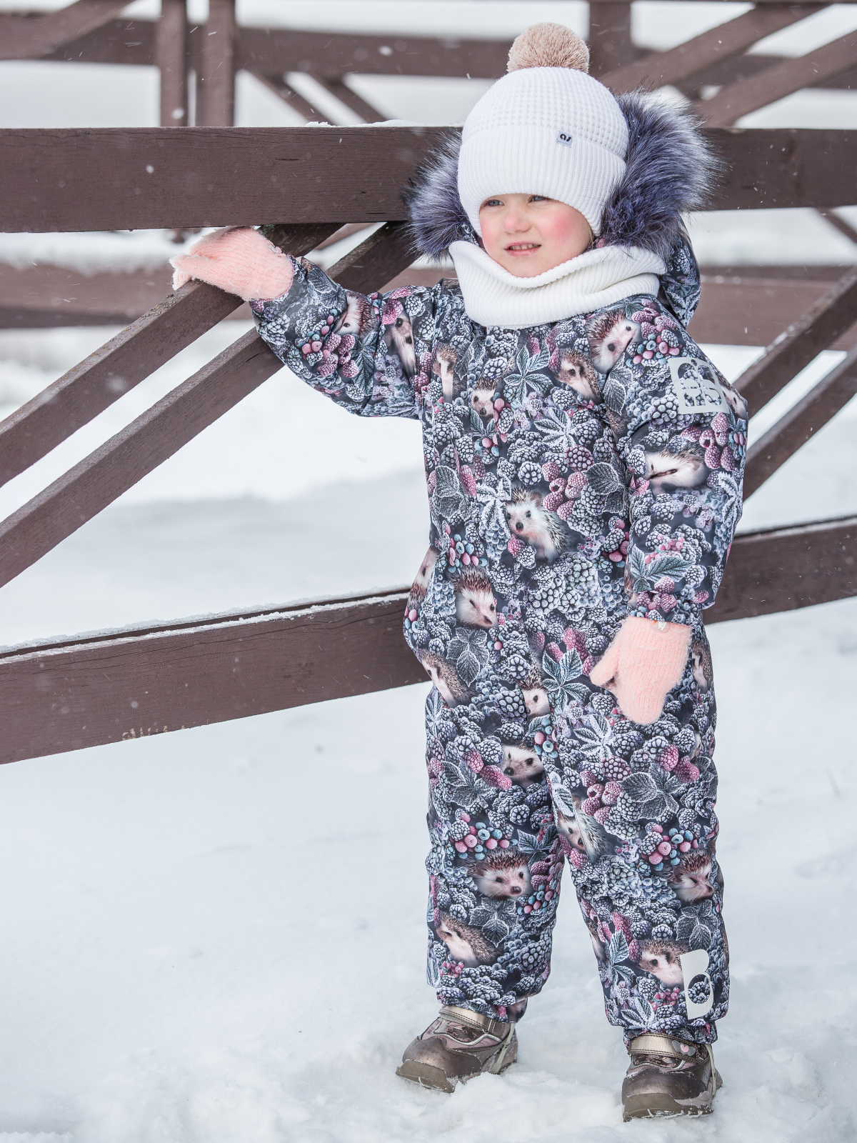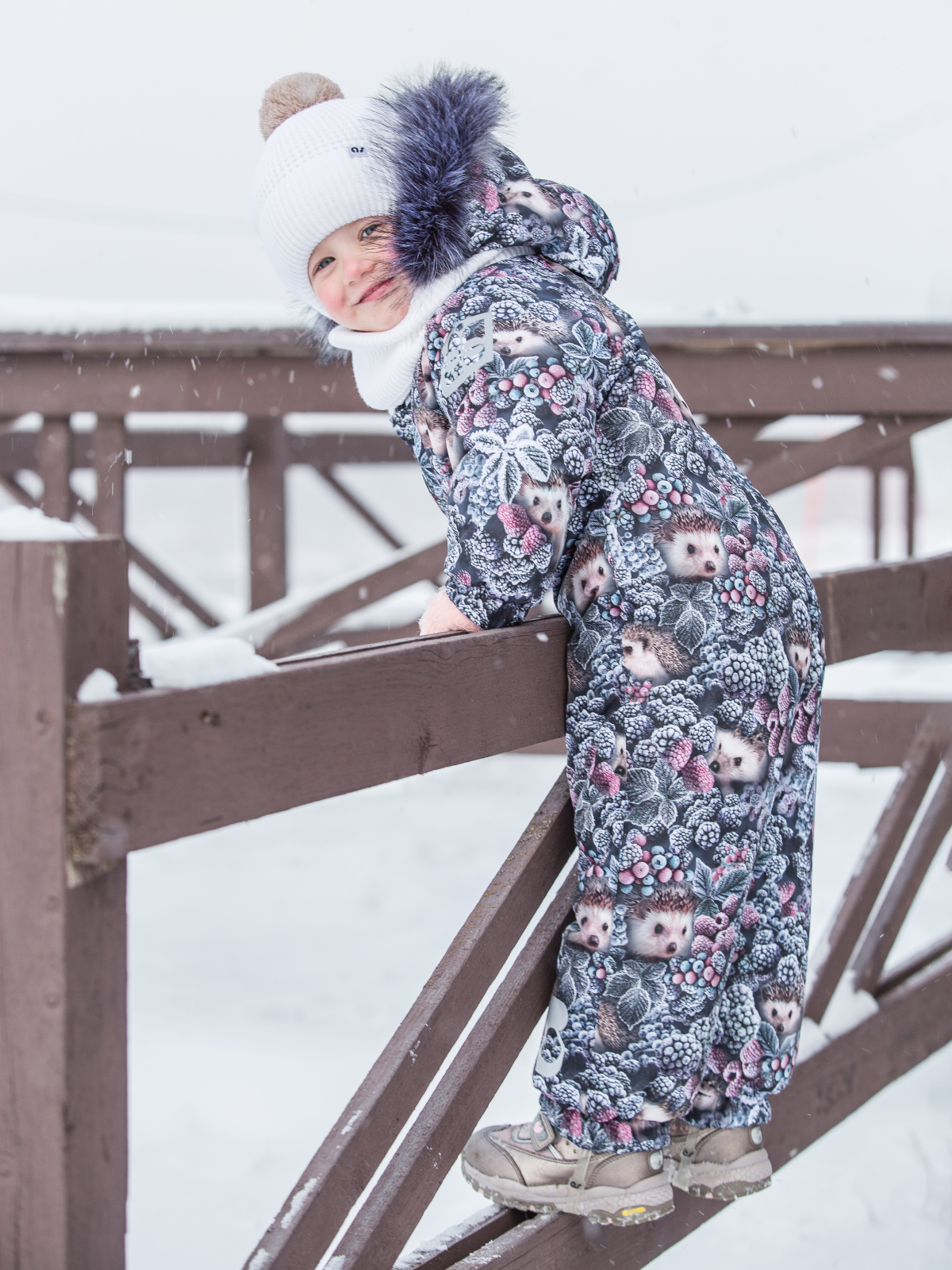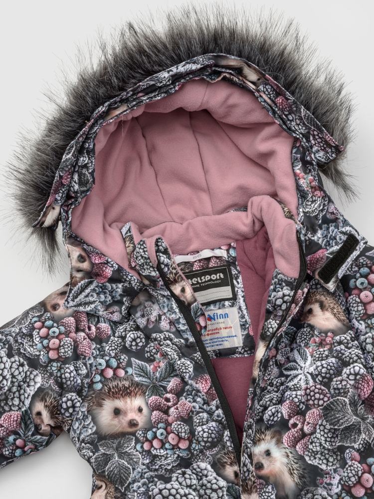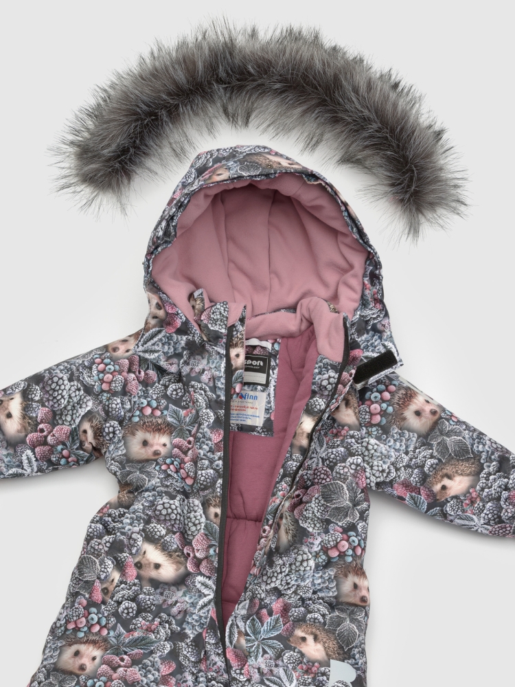 Этот детский утепленный комбинезон с эксклюзивными принтами идеально подойдет для самых маленьких мальчиков и девочек, благодаря своему унисекс дизайну. Изготовленный из мембранной ткани с параметрами водонепроницаемости и воздухопроницаемости 7000/7000 и оснащенный технологичным утеплителем Termofinn на 300 гр, комбинезон для девочки обеспечивает комфорт во время прогулок, посещений детского сада и активных зимних занятий. Удлиненная молния с дополнительной защитой от защемления подбородка с ветрозащитным клапаном упрощает процесс одевания. Капюшон интегрирован, несъемный, с возможностью регулировки глубины специальным клапаном и декорирован съемной опушкой из искусственного меха чёрно-бурой лисы. В комбинезоне для малышей манжеты рукавов на резинке с внутренней стороны дополнены мягкой обтачкой из микрофлиса для дополнительного уюта. Для хранения мелочей предусмотрен один теплый карман на кнопке. Комбинезон зимний для мальчика детский оснащен множеством светоотражающих элементов, которые обеспечивают видимо