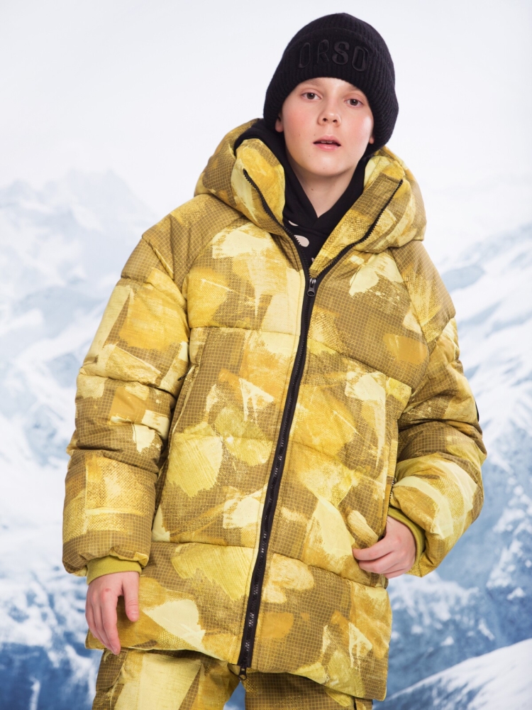 Стильная, зимняяя куртка для мальчика от бренда Orso Bianco,с утеплителем TermoFinn 300грамм. Верх куртки выполнен из Point Membrana. Модель представлена в трех трендовых принтованных расцветках:жаккард желто-зеленый,жаккард джинсовый,жаккард черный. Для большего удобства подкладка куртки сделана из полиэстера. Размерный ряд: 140,146,152,158,164,170. Объемный капюшон и высокий воротник куртки прекрасно защитит мальчика/подростка/мужчину от непогодных условий.Для удобства есть два расположенных по бокам кармана на молнии.По низу куртки распологаются две утяжки,для лучшей защиты в морозные дни. Для защиты от задувания ветра на рукавах есть трикотажные манжетки.На левом рукаве красуется круглая эмблема нашего бренда.Зимняя куртка для мальчика идеально подойдет для повседной носки,а также для занятий зимним спортом.Рекомендованный температурный режим до - 35С (необходимо учитывать нижние слои одежды, степень активности ребенка, климатические условия региона).