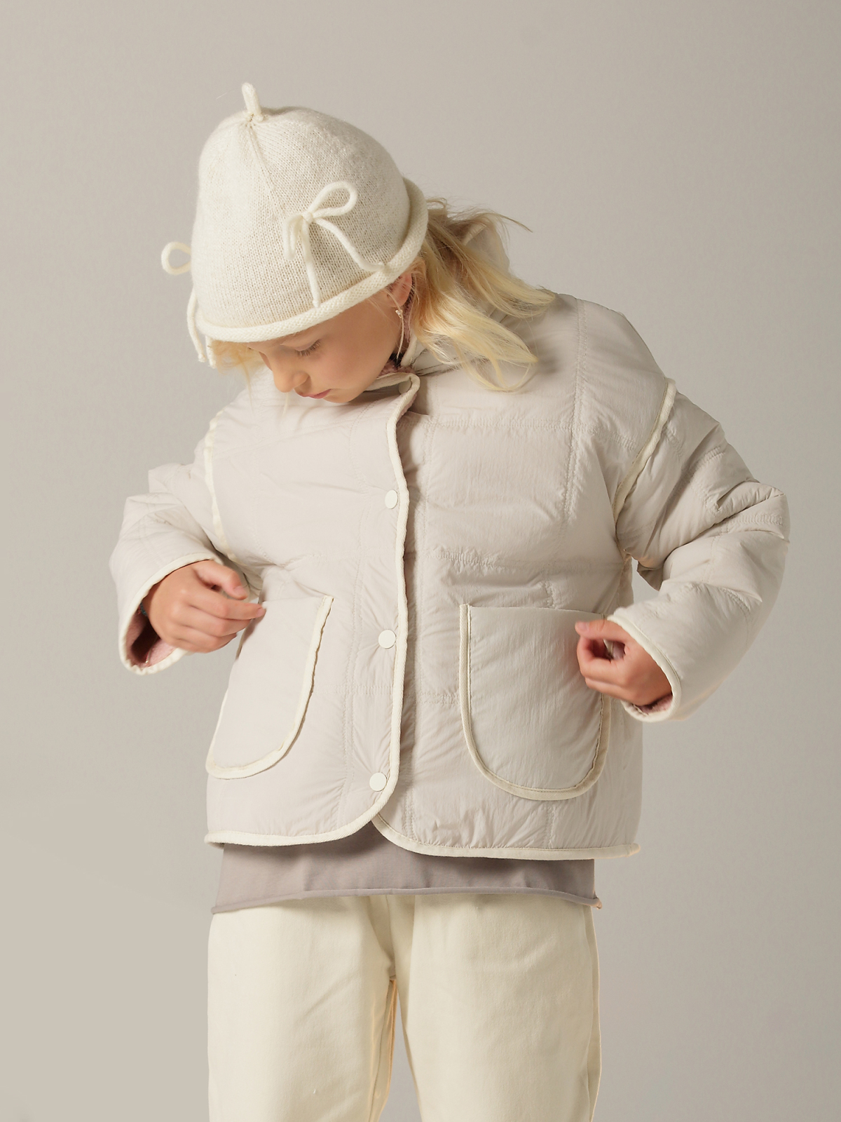Двусторонняя куртка для девочки — универсальное решение для переменчивой погоды. Утеплитель Термофин 60 г. Одна сторона выполнена из мягкого экомеха: застежка на кнопки и высокий воротник стойка сохраняют тепло и защищают горло от ветра. Рукав со спущенным плечом придает модели современный силуэт и не сковывает движений. Два накладных кармана практичны для мелочей и согревания рук, на одном из них аккуратно размещен логотип бренда. Контрастная декоративная окантовка делает образ завершенным и стильным. Обратная сторона изготовлена из ткани с водоотталкивающей пропиткой, что обеспечивает дополнительную защиту в сырую погоду. Здесь также предусмотрены два накладных кармана, а логотип бренда элегантно размещен на спинке. Контрастная окантовка по всему изделию подчеркивает форму и акцентирует внимание на деталях. Легкая смена стороны позволяет адаптировать образ под настроение и погодные условия. Куртка рассчитана на температурный режим +0…+10 °C; при выборе дополнительно учитывайте степень активности ребенка и к