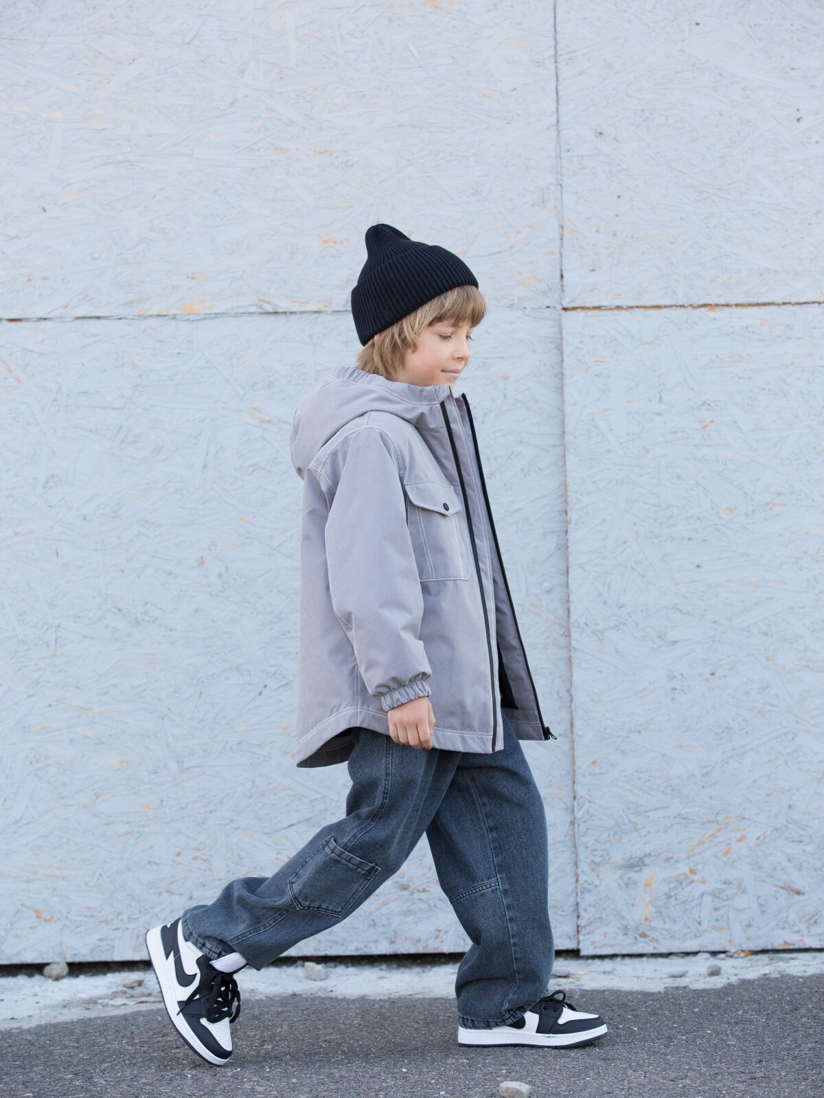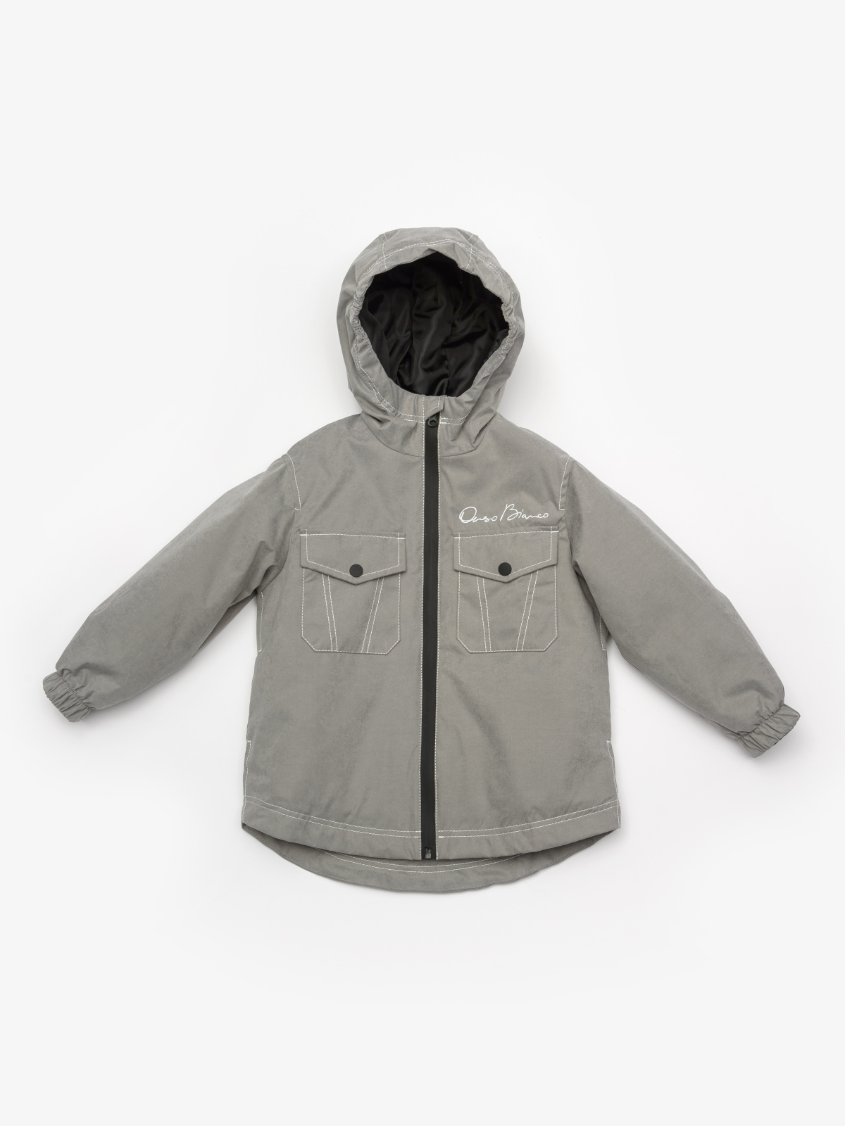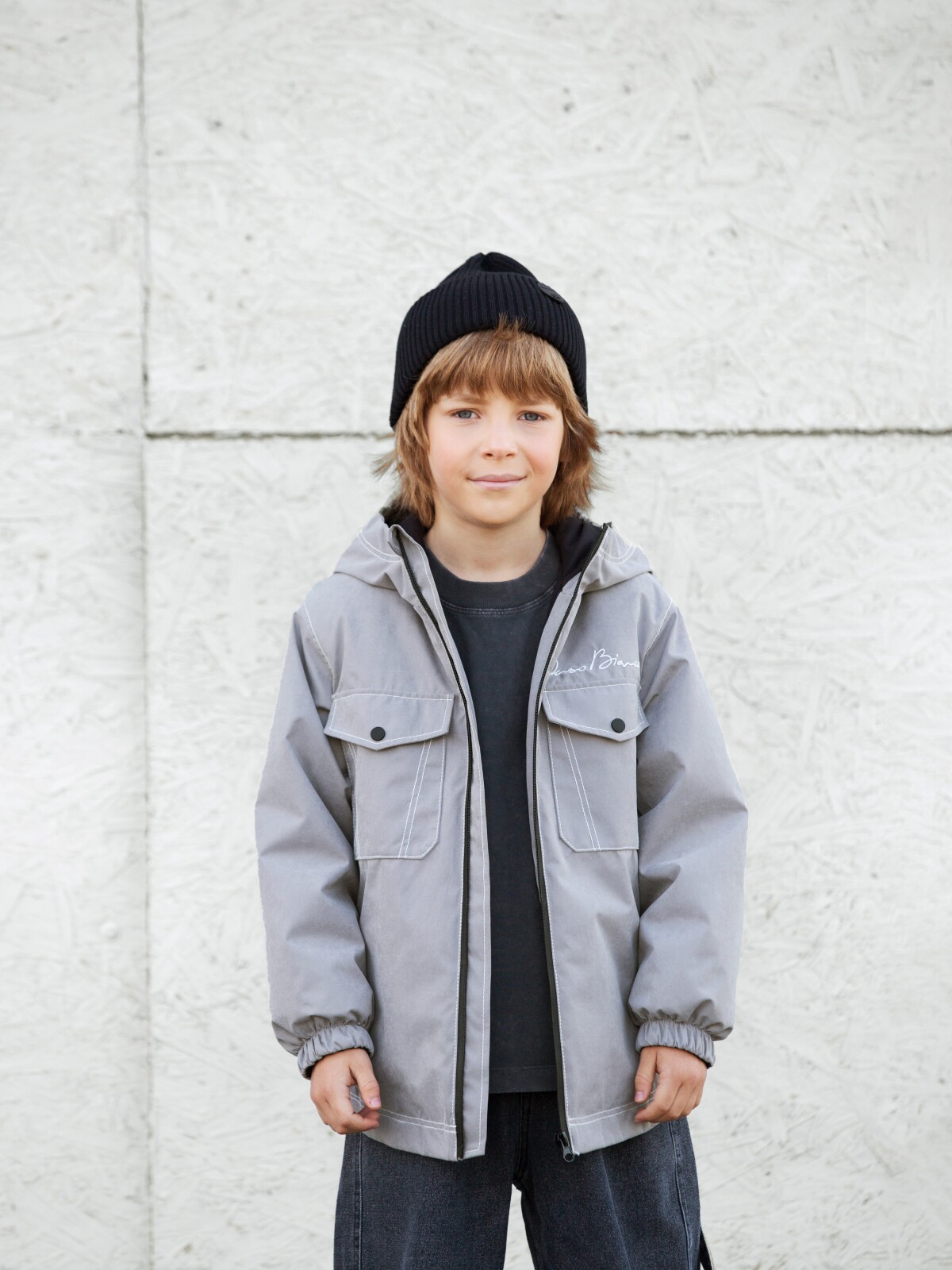 Демисезонная куртка для мальчика. Ищете стильную и удобную куртку для мальчика на демисезон? Наша модель — идеальный выбор! Она сшита из мягкой мембранной ткани с бархатным эффектом, которая обеспечивает комфорт и защиту от непогоды. Особенности модели: Утеплитель Термофин плотностью 100 г/м² гарантирует тепло и комфорт в прохладную погоду. Подкладка из полиэстера обеспечивает прочность и долговечность куртки. Свободный крой модели «куртка-рубашка» не сковывает движений. Центральная застёжка на молнии с внутренней ветрозащитной планкой защищает от ветра и холода. Дополнительная защита подбородка от защемления делает куртку безопасной и удобной. Два накладных кармана на кнопке в передней части куртки позволяют хранить необходимые мелочи. Втачной несъёмный капюшон добавляет функциональности и стиля. Манжеты рукавов обрамлены мягким микрофлисом, что обеспечивает комфортное соприкосновение с кожей ребёнка. Контрастные швы и вышивка с надписью бренда делают куртку уникальной и запоминающейся.