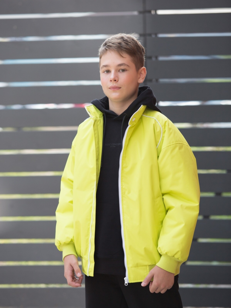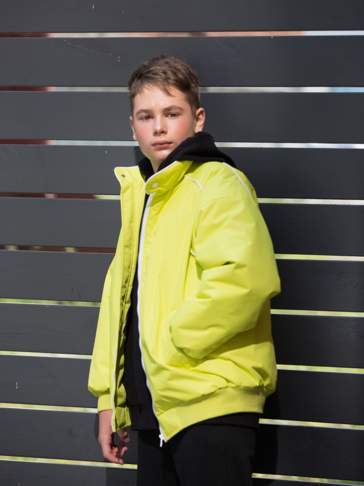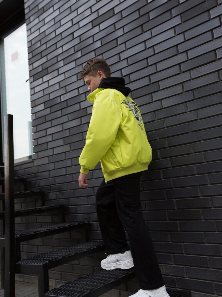 Молодёжная демисезонная куртка-бомбер - хит сезона из мембранной ткани Point membrana с характеристиками 3000/3000. Стильная демисезонная куртка для мальчиков, парней подростков, а также девочек и девушек на осень и весну. Куртка с утеплителем TermoFinn 100 гр. станет неотъемлемой частью верхней одежды ребенка. На рукавах и понизу изделия трикотажные манжеты. На спине наклейка с фирменным логотипом в стиле уличного гриффити. Подкладка выполнена из 100% Полиэстер. Стильный топовый дизайн. Данная модель очень популярна в уличной моде всех стран. Два кармана. Утепленный бомбер идеальный вариант для повседневных весенних, летних, осенних прогулок! Утепленная куртка бомбер это универсальный вид куртки, отлично будет сочетаться с толстовкой и спортивными штанами. Модные цвета: желто-зеленый, черный, ультрамарин и принт. Рекомендуемый температурный режим от 0/+5С до + 15С (необходимо учитывать индивидуальные особенности ребенка, нижние слои одежды и климатические условия).