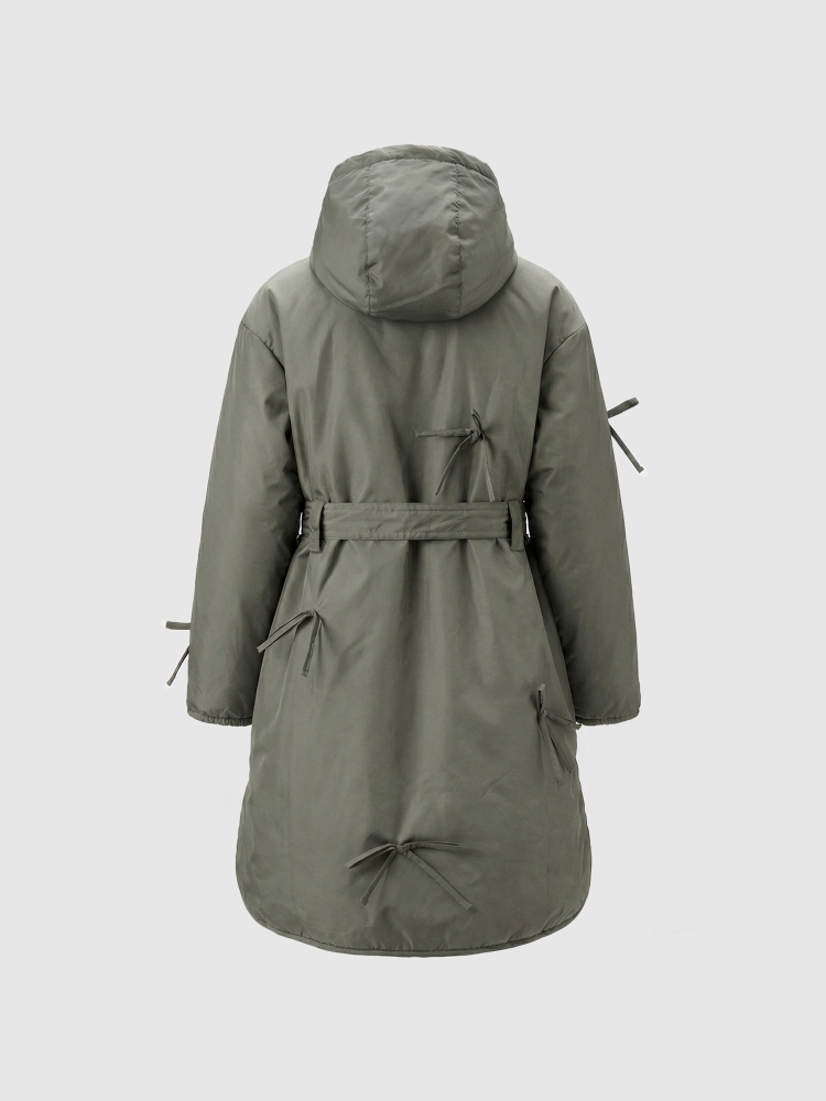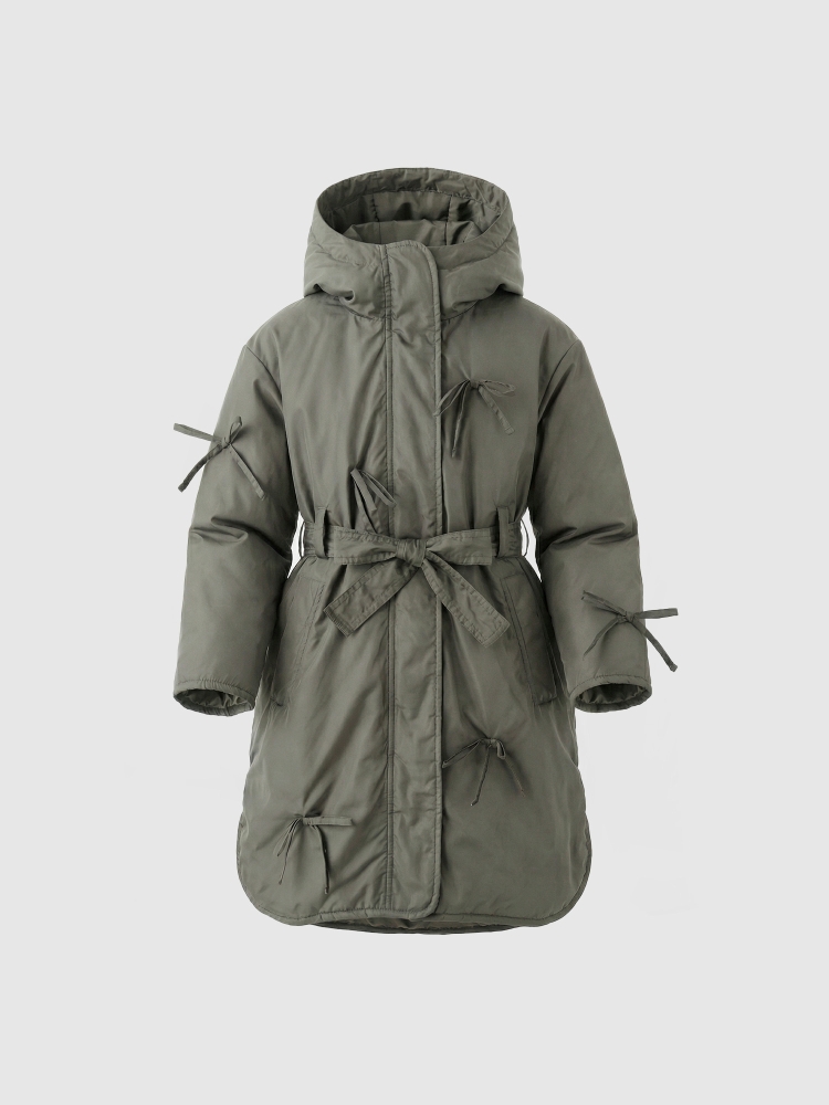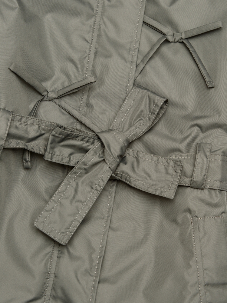 Утепленное пальто для девочки — стильное и практичное решение на весну и осень. Высокий воротник плавно переходит в глубокий втачной капюшон, надежно защищая от ветра и легкой влаги. Застежка на молнию дополнена внешней ветрозащитной планкой на кнопках по всей длине для дополнительного комфорта. Верх выполнен из ткани с водоотталкивающей пропиткой, подкладка из гладкого полиэстера приятна к телу и не цепляется за одежду, утеплитель Thermofin 100 г обеспечивает оптимальный температурный режим от 0 до +10 градусов без лишнего объема. Два глубоких кармана удобны для перчаток и мелочей. По бокам — разрезы в рубашечном стиле для свободы движений. Шлевки и пояс в комплекте помогают подчеркнуть силуэт, а декоративные бантики придают образу нежность и аккуратный нарядный акцент. Небольшой логотип бренда размещен в боковом шве, не отвлекая от общей эстетики. Пальто гармонично сочетается с повседневной и школьной одеждой, подходит для активных прогулок и городских образов. Легкое в уходе, сохраняет форму и цвет после с