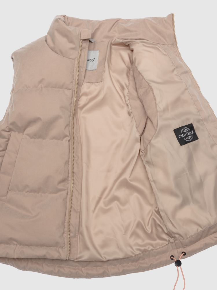 Утепленная жилетка для девочки из мембранной ткани 5000/5000 надежно защищает от ветра и легкой влаги, оставаясь дышащей и комфортной в активном движении. Подкладка из гладкого полиэстера приятна к телу и не электризуется. Утеплитель синтепух 150 г держит тепло в межсезонье при температуре от +5 до +15 градусов, не утяжеляет и сохраняет объем. Высокий воротник-стойка защищает шею от продувания, молния с внутренней ветрозащитной планкой дополнена мягким защитным клапаном у подбородка — без риска защемления. Свободный оверсайз-крой и глубокая пройма позволяют легко надевать жилетку поверх худи или свитера, не стесняя движений. Два глубоких кармана безопасно вмещают телефон, перчатки и мелочи. По низу изделия — регулируемая кулиска со стопперами для настройки посадки и лучшей теплоизоляции. Яркий логотип бренда на передней части добавляет акцент и делает образ узнаваемым. Практичная, легкая и стильная — подходит для школы, прогулок и активного отдыха.
