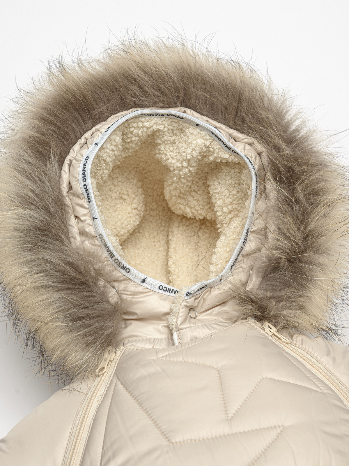 Верх: 100 % ПЭ ¶Подкладка: 100 % хлопок¶Утеплитель: 100 % ПЭ ¶Опушка: натуральный мех(енот)