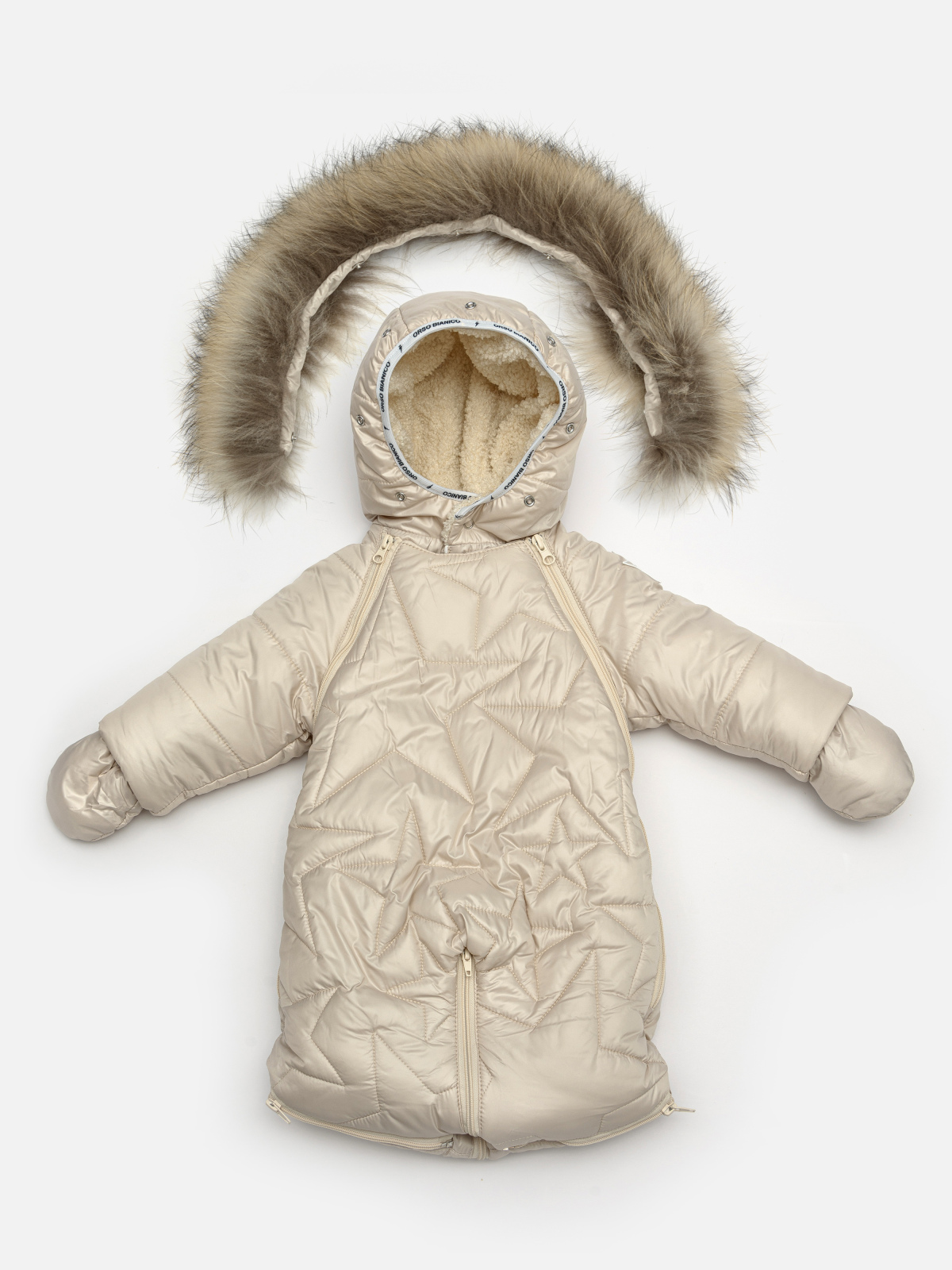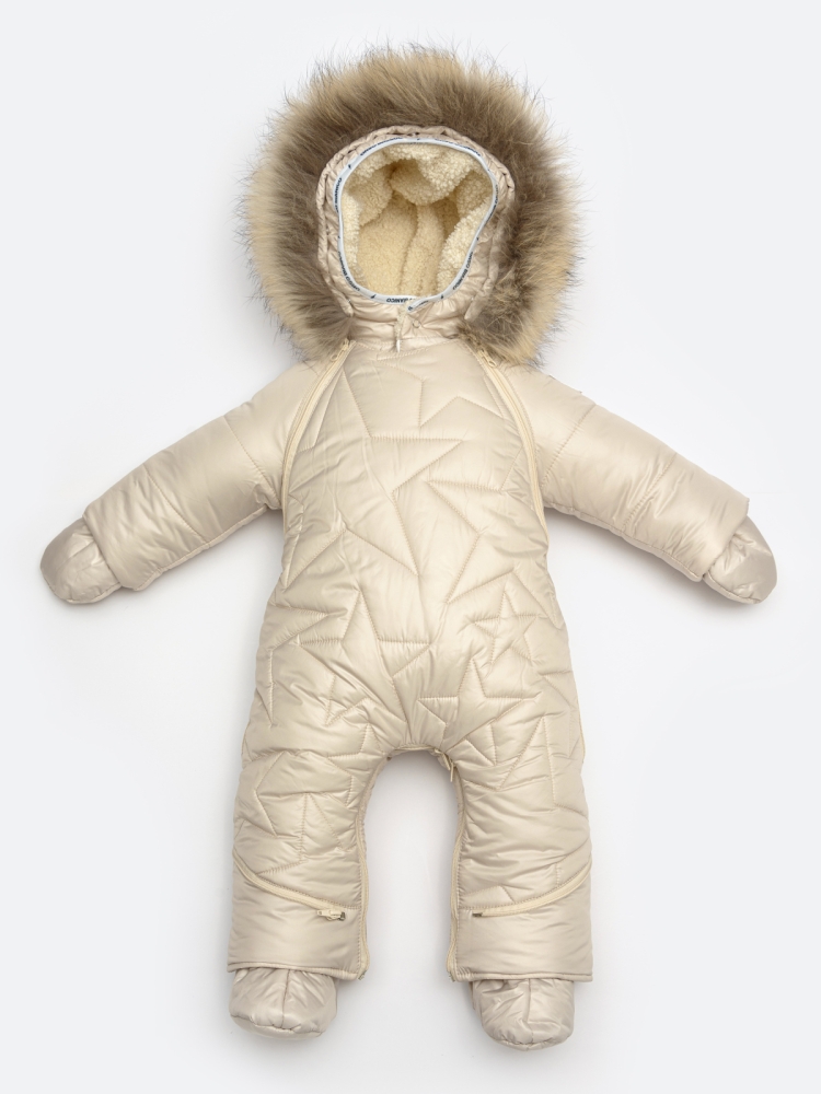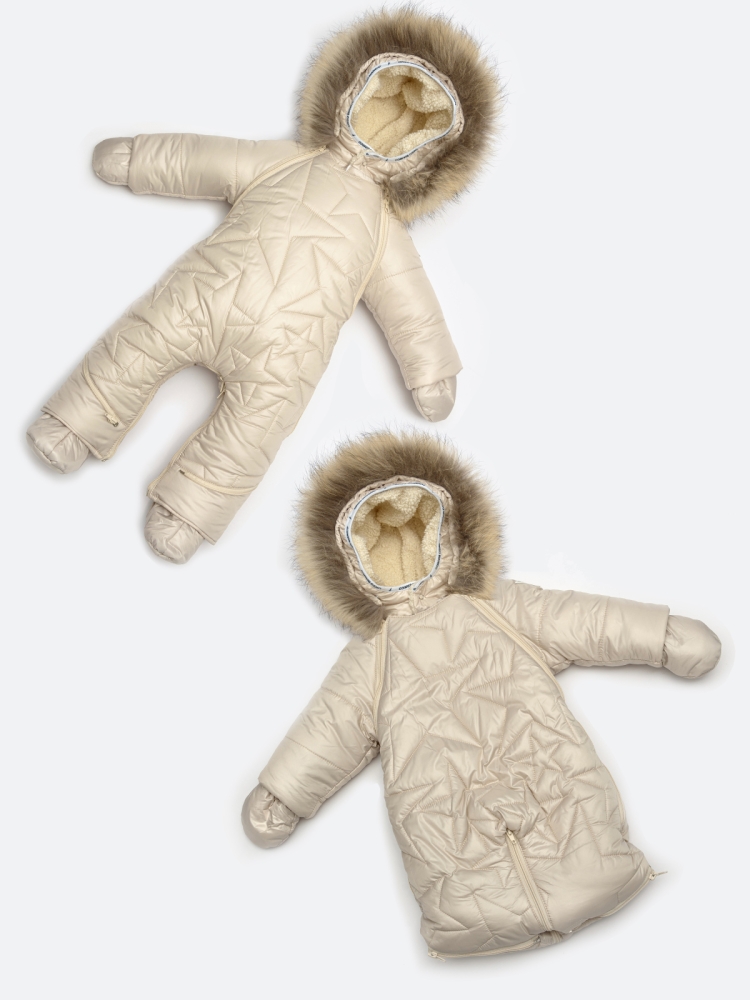 Гламурный детский комбинезон-трансформер для самых маленьких. Функциональный и стильный дизайн в виде втачных звёдочек,в сочетании с современной тканью верха и легким утеплителем TermoFinn 300 гр., защитит малыша от всех погодных невзгод. Верх изделия выполнен из ткани с глянцевым эффектом и водоотталкивающей пропиткой, практичной, легкой в уходе, не требующей частых стирок. Зимний трансформер наполнен утеплителем по особой технологии без мостиков холода. В вариации конверта модель подходит с первых месяце жизни малыша, далее, можно использовать как комбинезон. Трансформер представлен в 4 расцветках,которые идеально подойдут девочкам и мальчикам. Молнии, с внутренней стороны изделия, обрамлены ветрозащитными планками. Втачной капюшон со съемной опушкой из натурального меха (енот). Пинетки и варежки в комплекте.Внутри капюшон,пинетки и варежки выполнены из велюра. Размерный ряд: 62,68,74.Подкладка в комбинезоне 100% хлопок. Температурный режим до - 35С (температурный режим носит рекомендательный характер)
