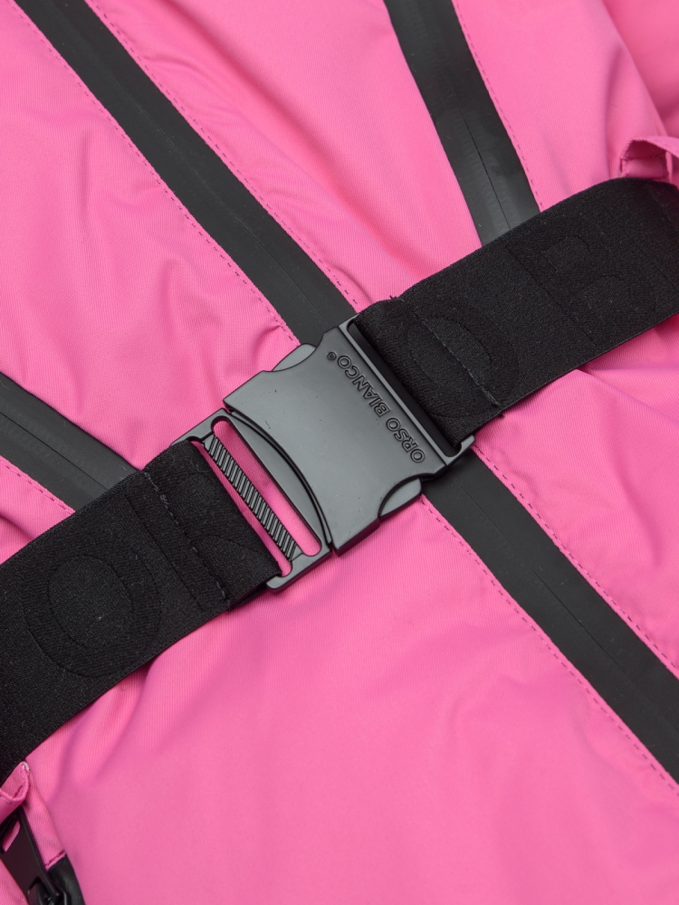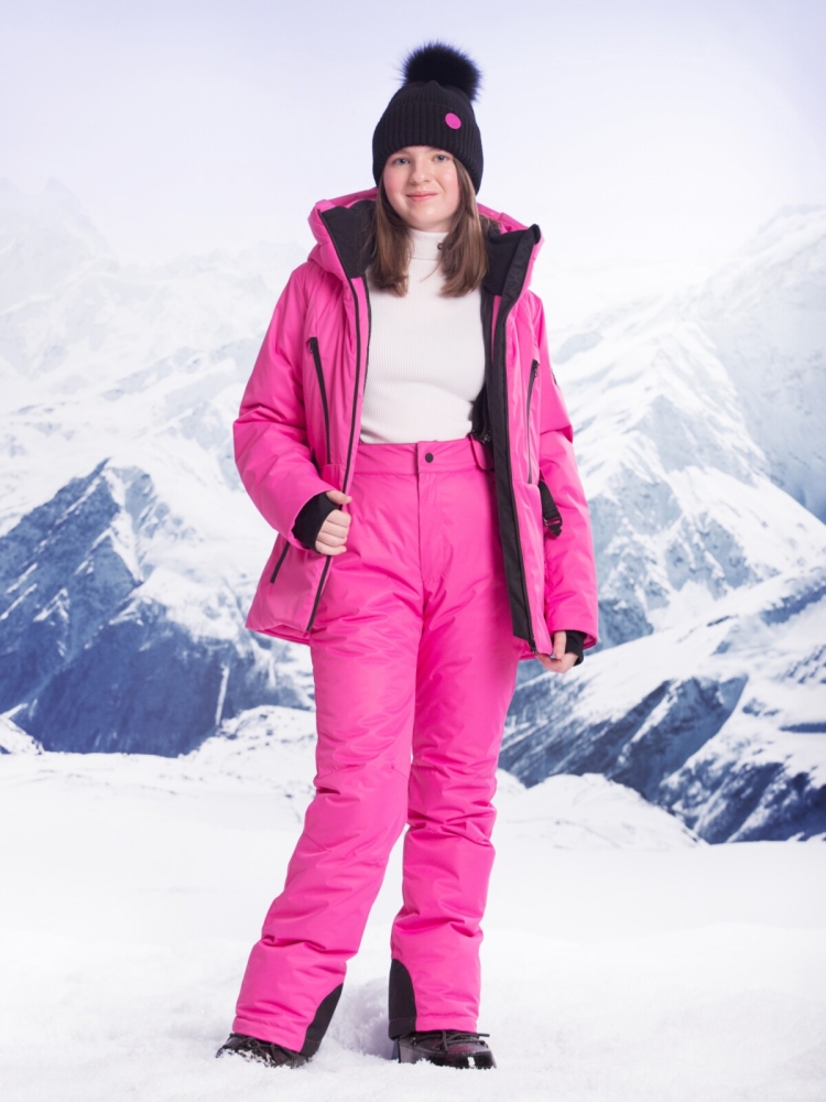 Зимний, детский комплект для девочки, девушки и женщины из мембранной ткани в сочетании с современным утеплителем TermoFinn 300 гр. Стильная модель – Хит-сезона, отлично подойдет как для повседневных прогулок, так и для занятий зимними видами спорта. Модель представлена в двух расцветках: фуксия и н.черный. В куртке объемный втачной капюшон. Высокий воротник защитит от ветра и вьюги. По низу рукавов есть эластичный манжет, с прорезью для большого пальца. Четыре кармана с влагозащитной молнией расположены спереди куртки. Карман для Ski-pass.Пояс в комплекте. На левом рукаве эмблема с брендом Orso Bianco в виде небольшой звезды. В полукомбинезоне по низу снегозащитный манжет с антискользящей резинкой, а также защита ткани усиленной вставкой по внутренней части штанин. Ширину штанин можно отрегулировать молнией с влагозащитной пропиткой. Два кармана. Регулируемые, съемные бретели. Подкладка – Полиэстер. Рекомендованный температурный режим до - 35С.