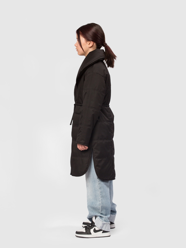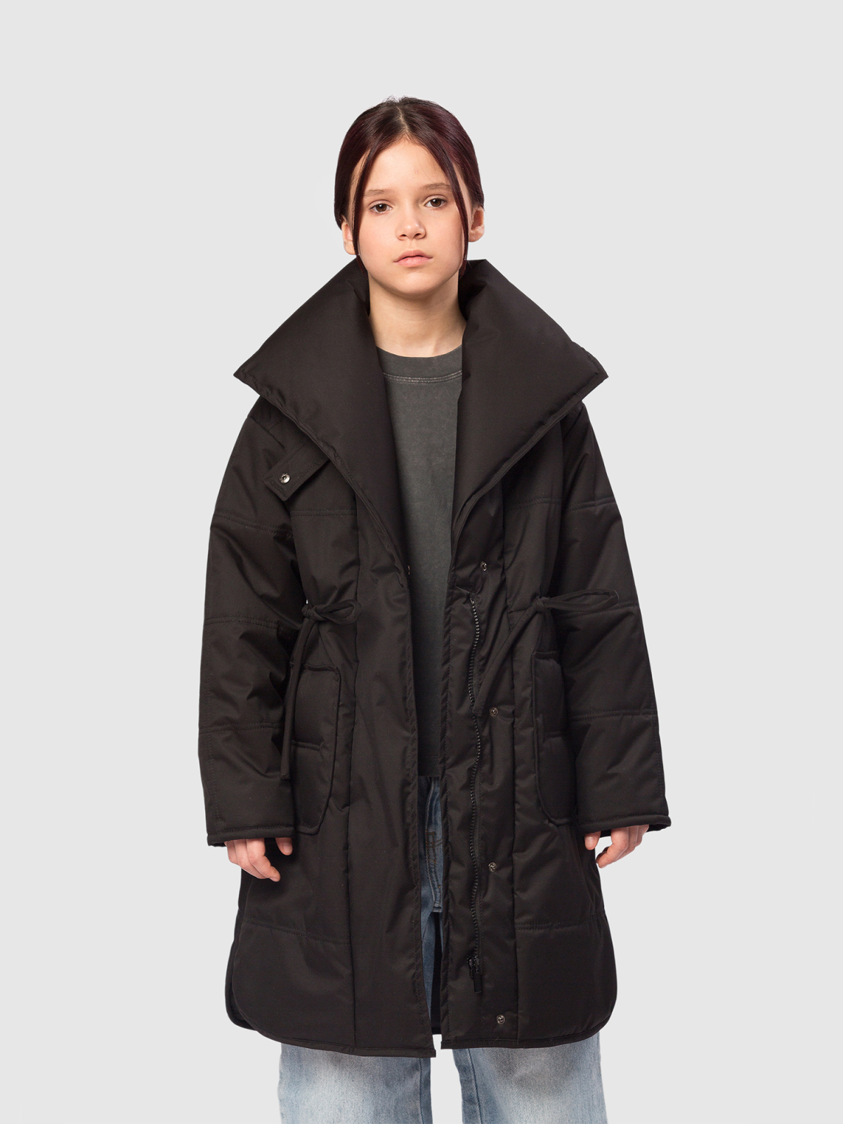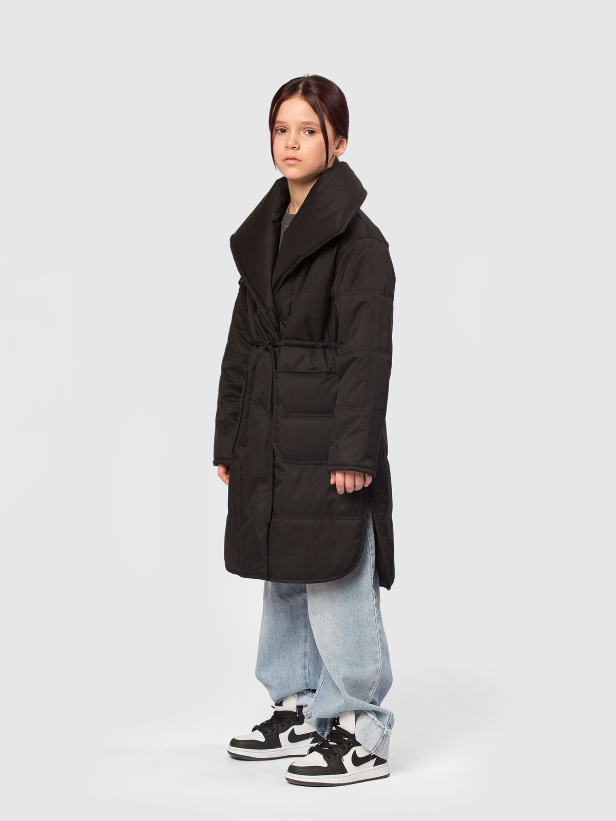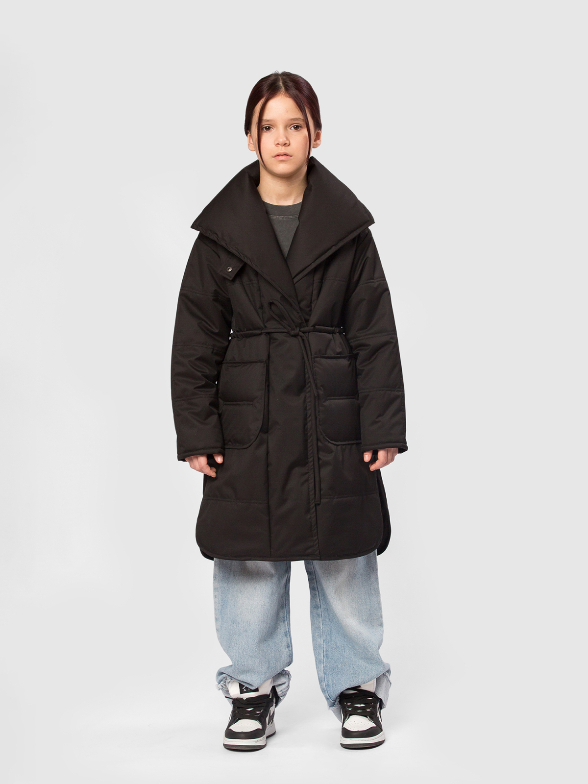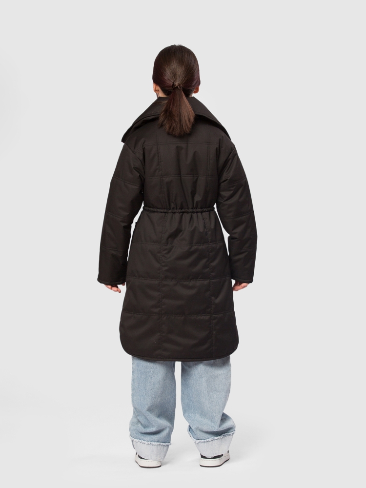 Пальто для девочки из мембранной ткани 3000/3000 — надежная защита от ветра и легкой влаги при активных прогулках и в межсезонье. Подкладка из гладкого полиэстера комфортна на ощупь и не электризуется, утеплитель Thermofin 100 г сохраняет оптимальную теплоизоляцию в диапазоне температур от 0 до +10 °C, не перегружая изделие. Укороченная молния дополнена внутренней ветрозащитной планкой и внешней планкой на кнопках по всей длине для максимальной защиты от продувания. Высокий воротник можно приподнять и зафиксировать патой на кнопку, обеспечивая дополнительное утепление шеи. Два глубоких накладных кармана вместят необходимые мелочи, а два боковых разреза добавляют свободу движений и удобство при ходьбе. В комплекте — пояс для создания более приталенного силуэта. Маленький логотип бренда аккуратно размещён в боковом шве, не нарушая общего стиля. Удлинённый фасон куртки смотрится элегантно и практичен для повседневного использования, идеально сочетается с кроссовками и сапожками. Пальто — функциональное и стильно