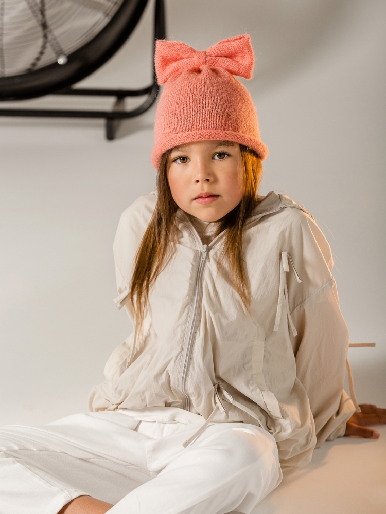 Пусть каждая прогулка вашей маленькой модницы будет наполнена очарованием и уютом. Эта шапочка — словно лёгкий намёк на весеннюю нежность даже в прохладный день. Её изюминка — аккуратный объёмный бантик, расположившийся на самой макушке, который придаёт игривости и трогательной женственности всему образу. Естественно закрученный край завершает этот деликатный и стильный силуэт, делая шапочку похожей на изящный цветок. Связана модель из премиальной итальянской пряжи с добавлением мягкого кид мохера, что дарит ей невесомую воздушность, исключительную мягкость и комфортное тепло. Эластичное полотно обеспечивает идеальную посадку, а отсутствие подклада делает шапочку приятной для повседневной носки. Она представлена в двух современных нежных оттенках и размерной группе 52-54 см (по обхвату головы), что позволяет легко подобрать идеальный вариант. Эта шапочка станет прекрасным спутником для прогулок при температуре от 0°C до +15°C, создавая лёгкую защиту от ветра и прохлады. *Ощущение комфорта зависит от климата в