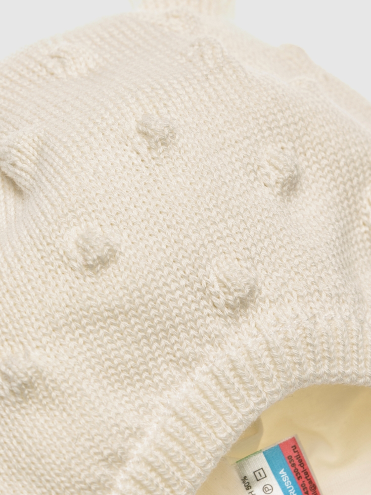 Подарите вашему малышу идеальный комфорт и умилительный стиль в прохладную погоду! Наша шапочка связана из нежной премиальной немецкой пряжи, которая сочетает 50% хлопка и 50% ПАН, а внутри — мягчайший подклад из 100% хлопка. Она создана без утеплителя, чтобы обеспечить комфортное «дышащее» тепло. Для комфортной и безопасной посадки мы предусмотрели удобные завязки — они надёжнее кнопок или пуговок, не давят на шею и помогают точно подогнать шапочку по фигуре. Нежная резинка по краю гарантирует идеальное прилегание без давления, полностью защищая уши и лоб от ветра. Детскую шапочку украшают милые объёмные ушки и декоративные фактурные шишечки, а палитра представлена нежными оттенками экрю и сиреневого. Шапочка подходит для обхвата головы 46, 48 и 50 см, и рекомендована для температуры от 0°C до +15°C. *Помните, что ощущение тепла индивидуально и зависит от активности малыша, погодных условий и подобранной одежды. Пусть ваши весенние и осенние прогулки будут наполнены комфортом и нежностью.