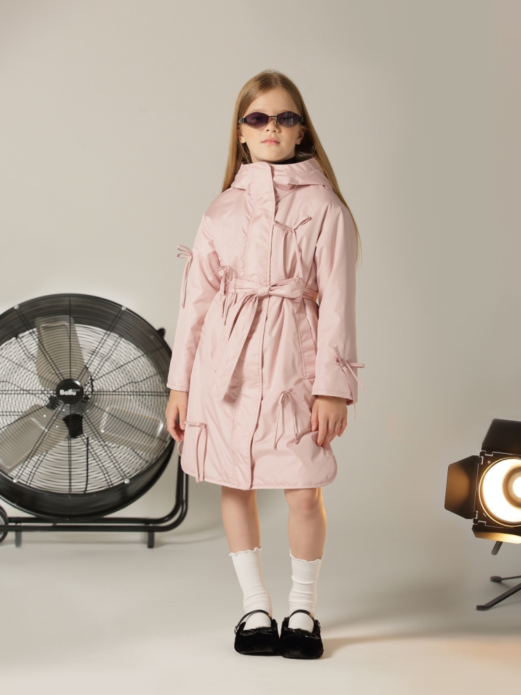 Утепленное пальто для девочки — стильное и практичное решение на весну и осень. Высокий воротник плавно переходит в глубокий втачной капюшон, надежно защищая от ветра и легкой влаги. Застежка на молнию дополнена внешней ветрозащитной планкой на кнопках по всей длине для дополнительного комфорта. Верх выполнен из ткани с водоотталкивающей пропиткой, подкладка из гладкого полиэстера приятна к телу и не цепляется за одежду, утеплитель Thermofin 100 г обеспечивает оптимальный температурный режим от 0 до +10 градусов без лишнего объема. Два глубоких кармана удобны для перчаток и мелочей. По бокам — разрезы в рубашечном стиле для свободы движений. Шлевки и пояс в комплекте помогают подчеркнуть силуэт, а декоративные бантики придают образу нежность и аккуратный нарядный акцент. Небольшой логотип бренда размещен в боковом шве, не отвлекая от общей эстетики. Пальто гармонично сочетается с повседневной и школьной одеждой, подходит для активных прогулок и городских образов. Легкое в уходе, сохраняет форму и цвет после с